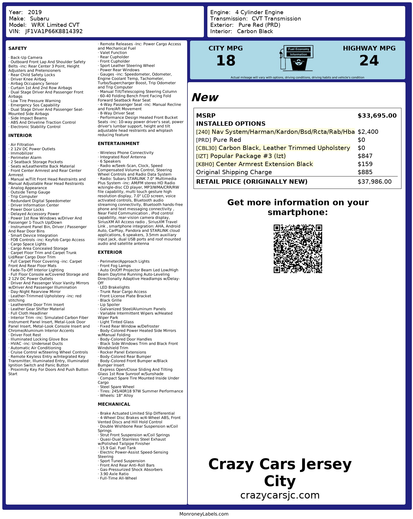 2019 Subaru WRX Limited CVT